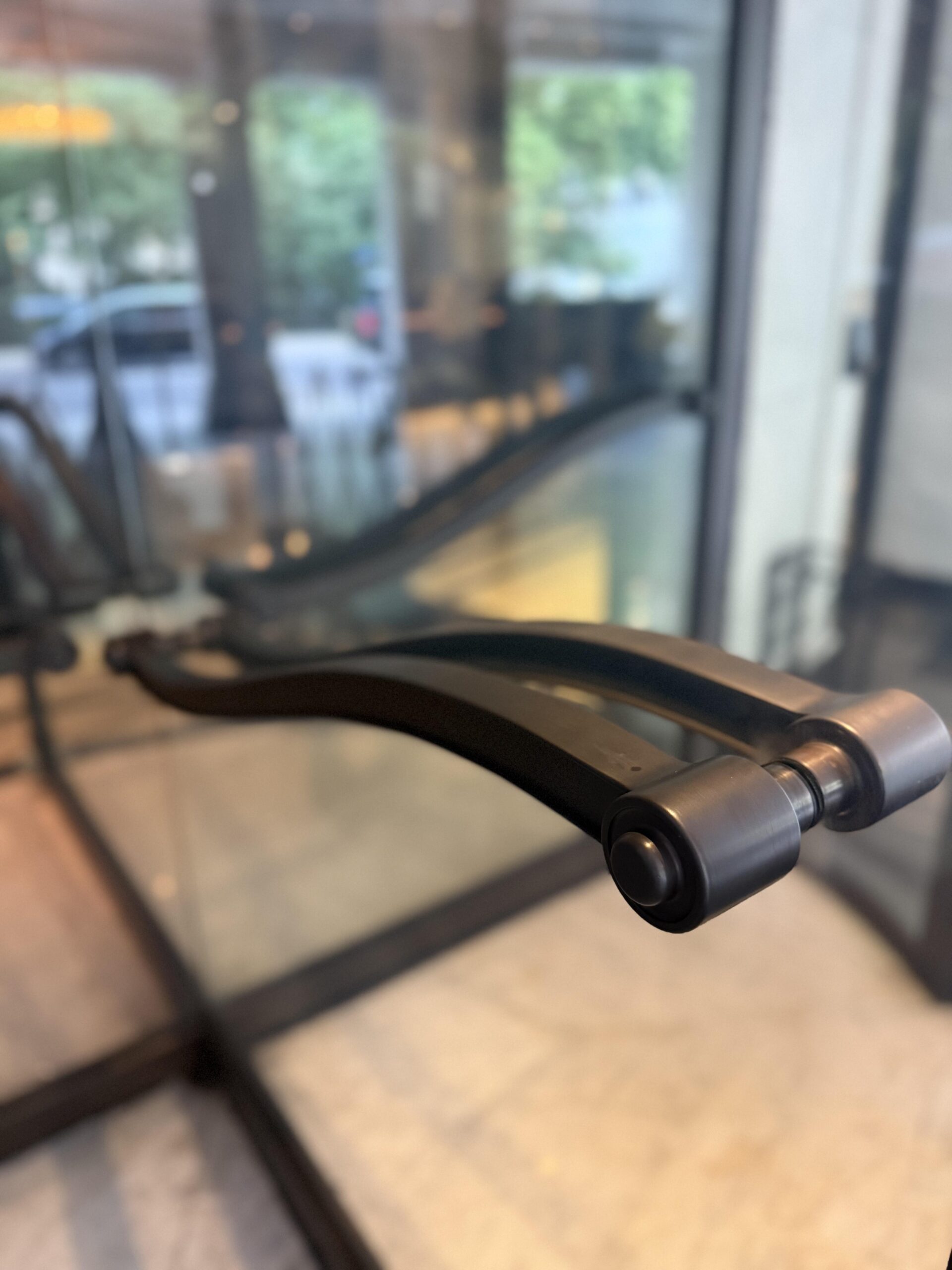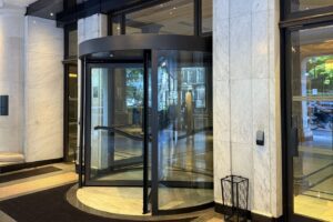 Each revolving door set was hand-finished and refined to a rich dark-bronze patina, restoring the hotel’s entrance to its original sophistication.