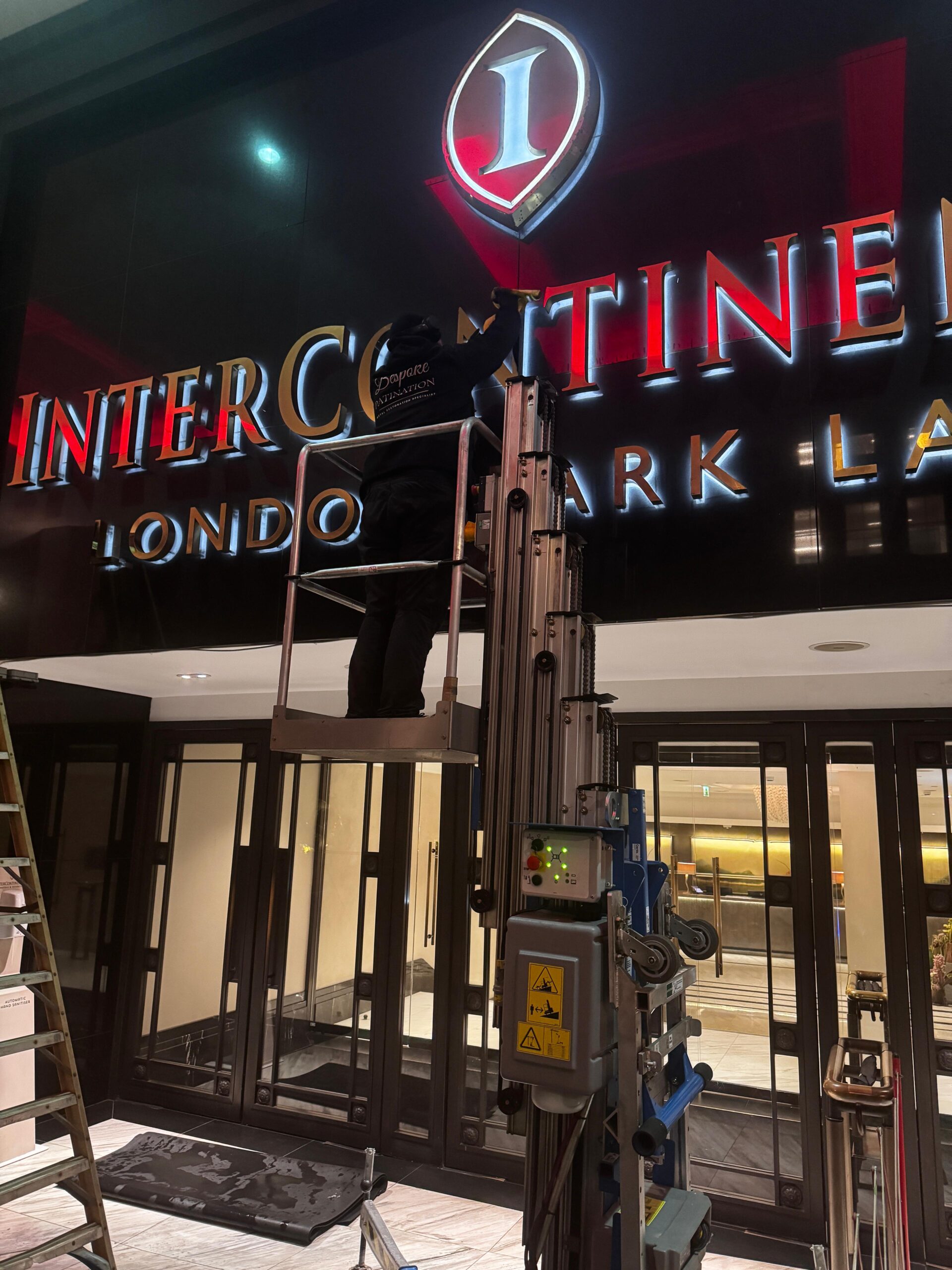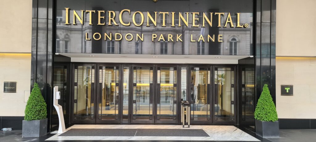 We were commissioned to carry out bronze and brass restoration across key guest-facing areas at the InterContinental Hotel on Park Lane in London. The works included the external bronze entrance doors, interior bronze handrails, satin brass kickplates leading to guest rooms and the polishing of the main polished brass façade signage at the hotel’s primary entrance.